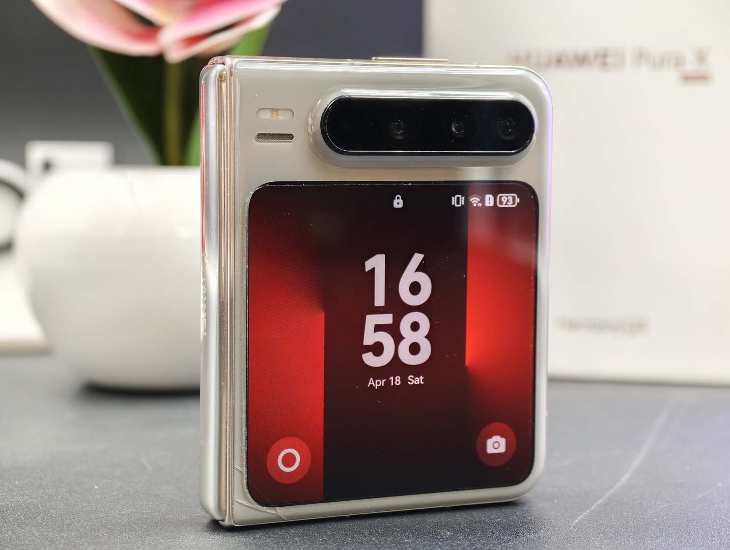Lo schermo esterno, poi, completa bene il quadro. Non è il classico pannello secondario pensato solo per un’occhiata veloce, ma un display che può diventare utile per una serie di azioni rapide senza costringere sempre ad aprire il telefono. Anche in questo caso si percepisce una certa coerenza progettuale: Huawei Pura X prova a essere particolare, sì, ma anche funzionale.