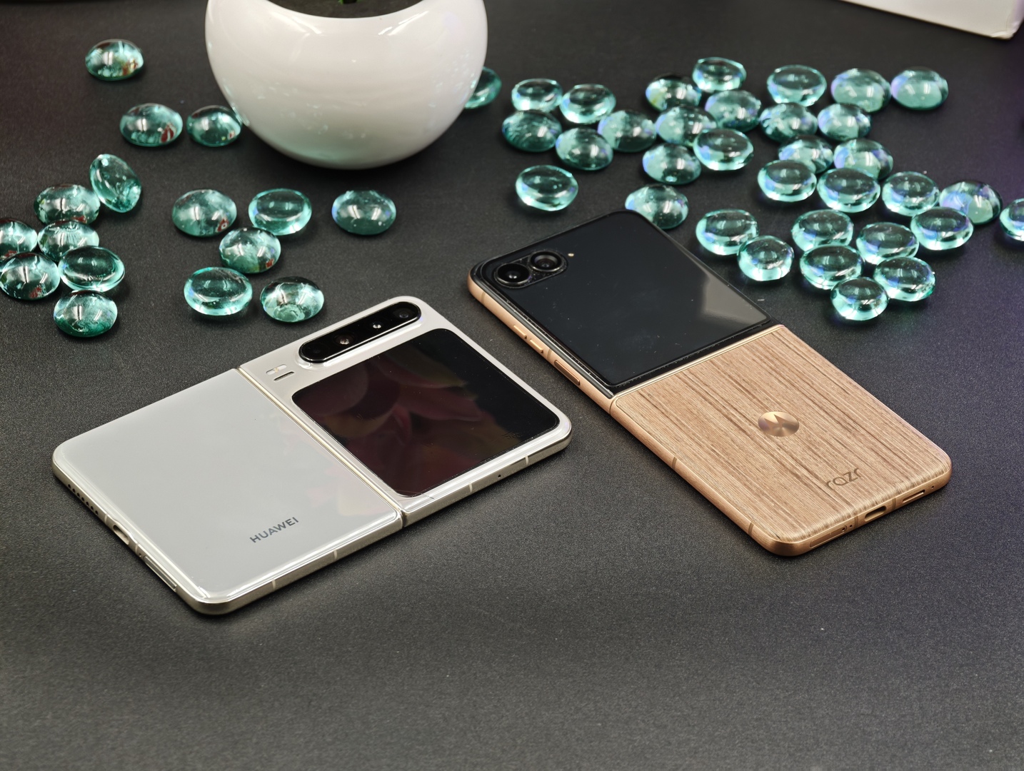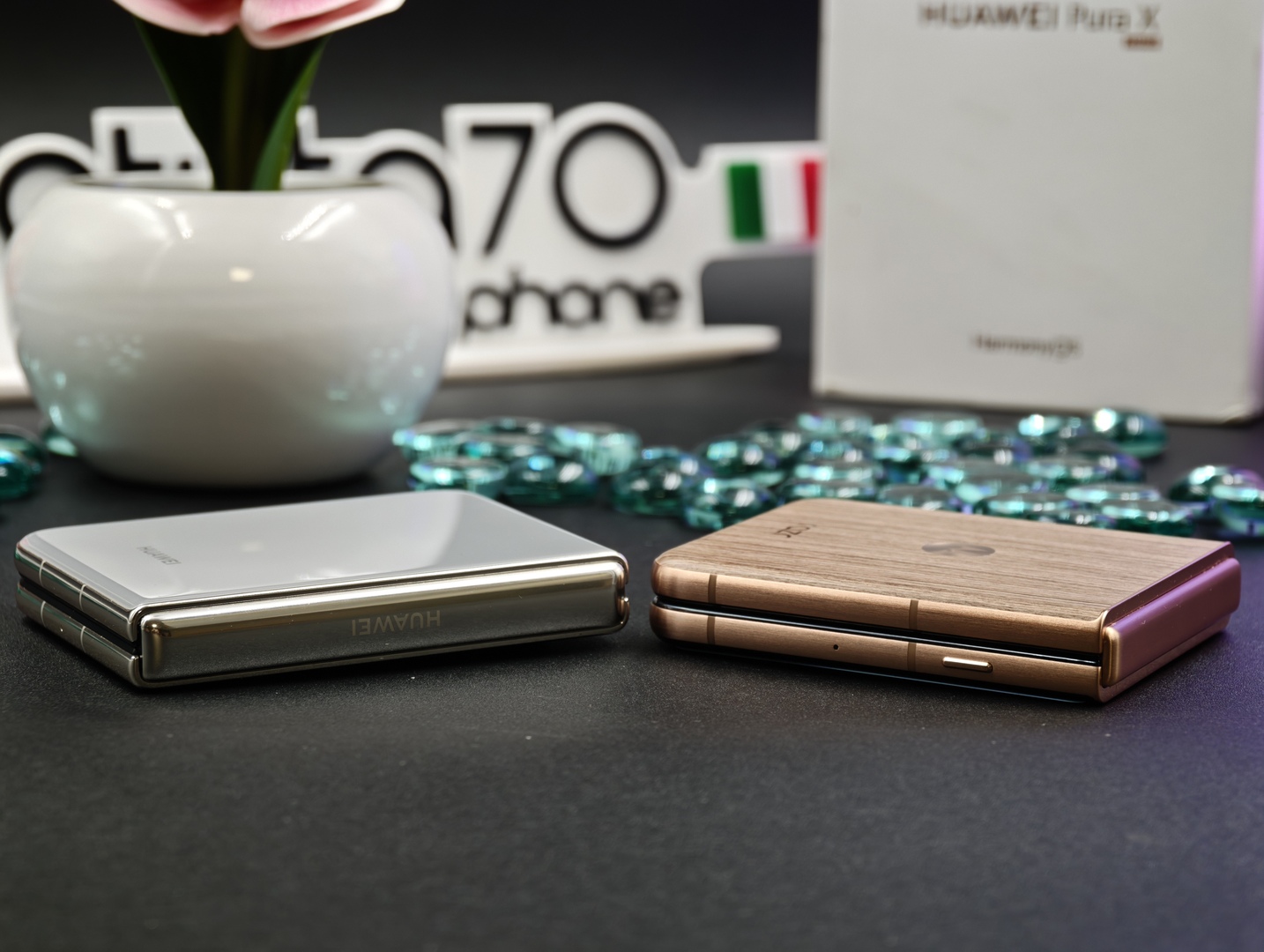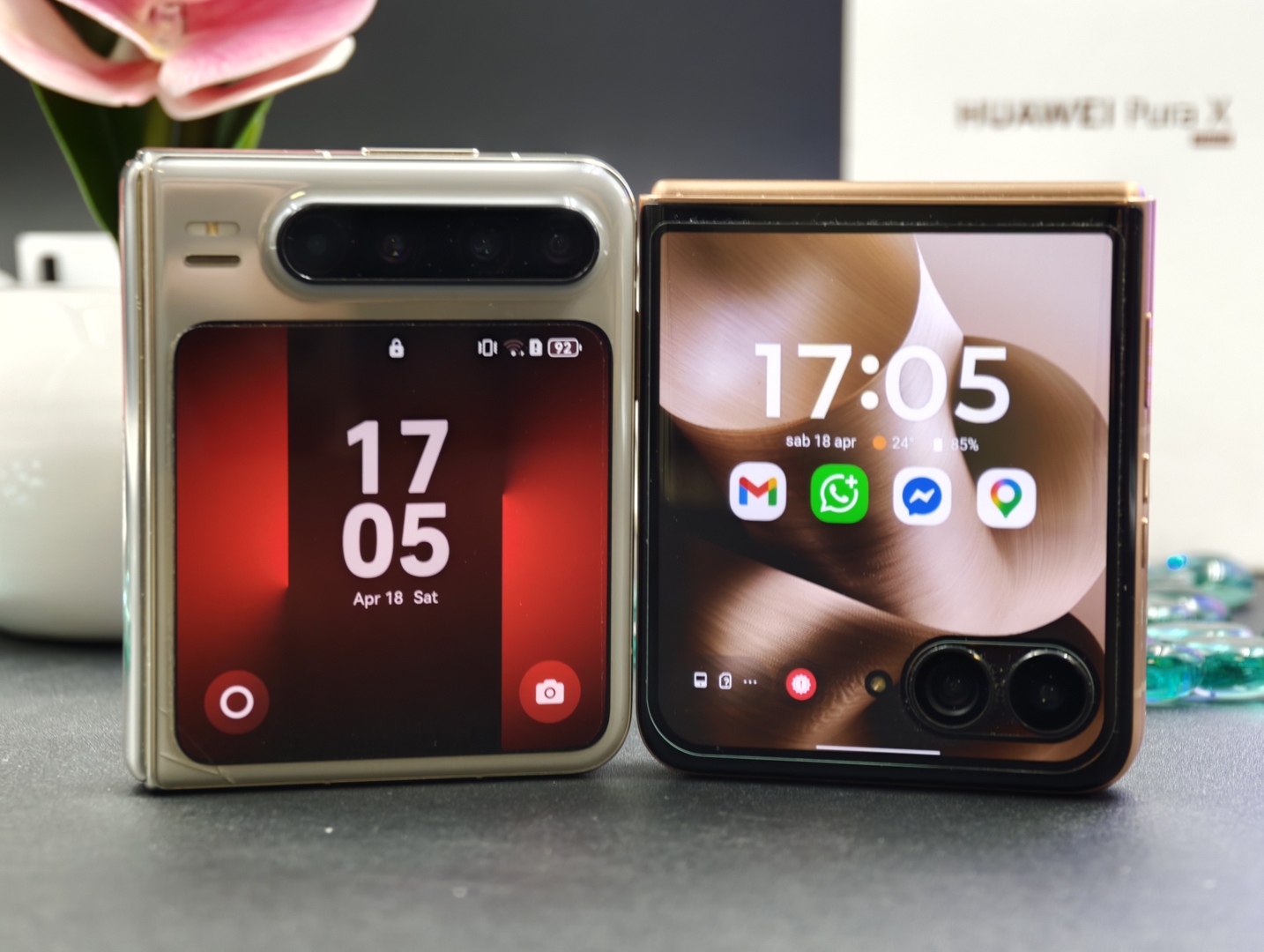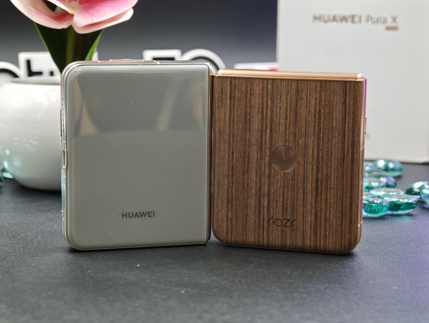 Huawei Pura X confrontato a un classico flip phone, motorola razr 60 Ultra