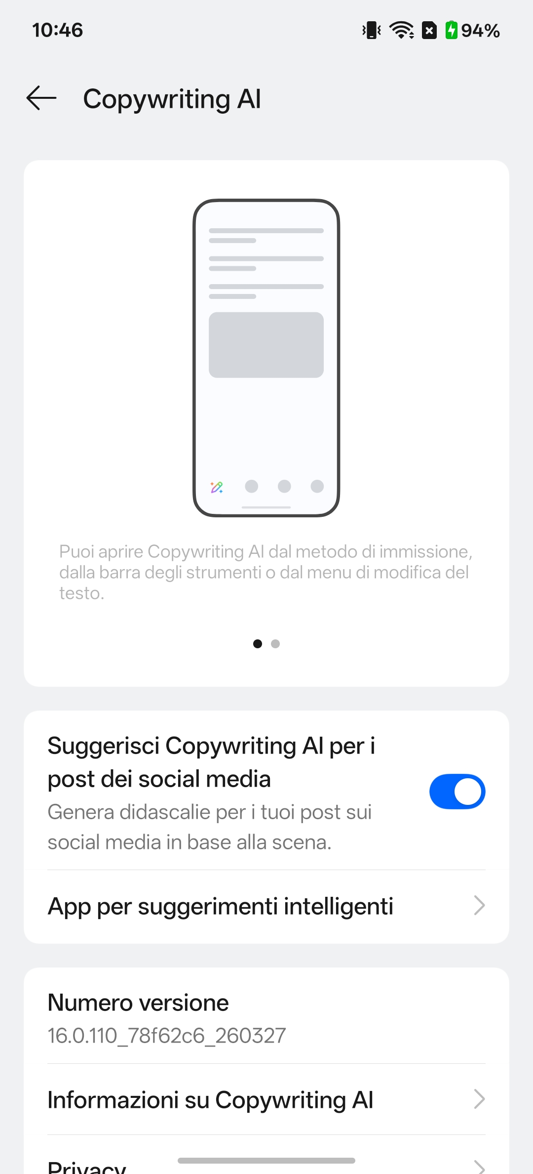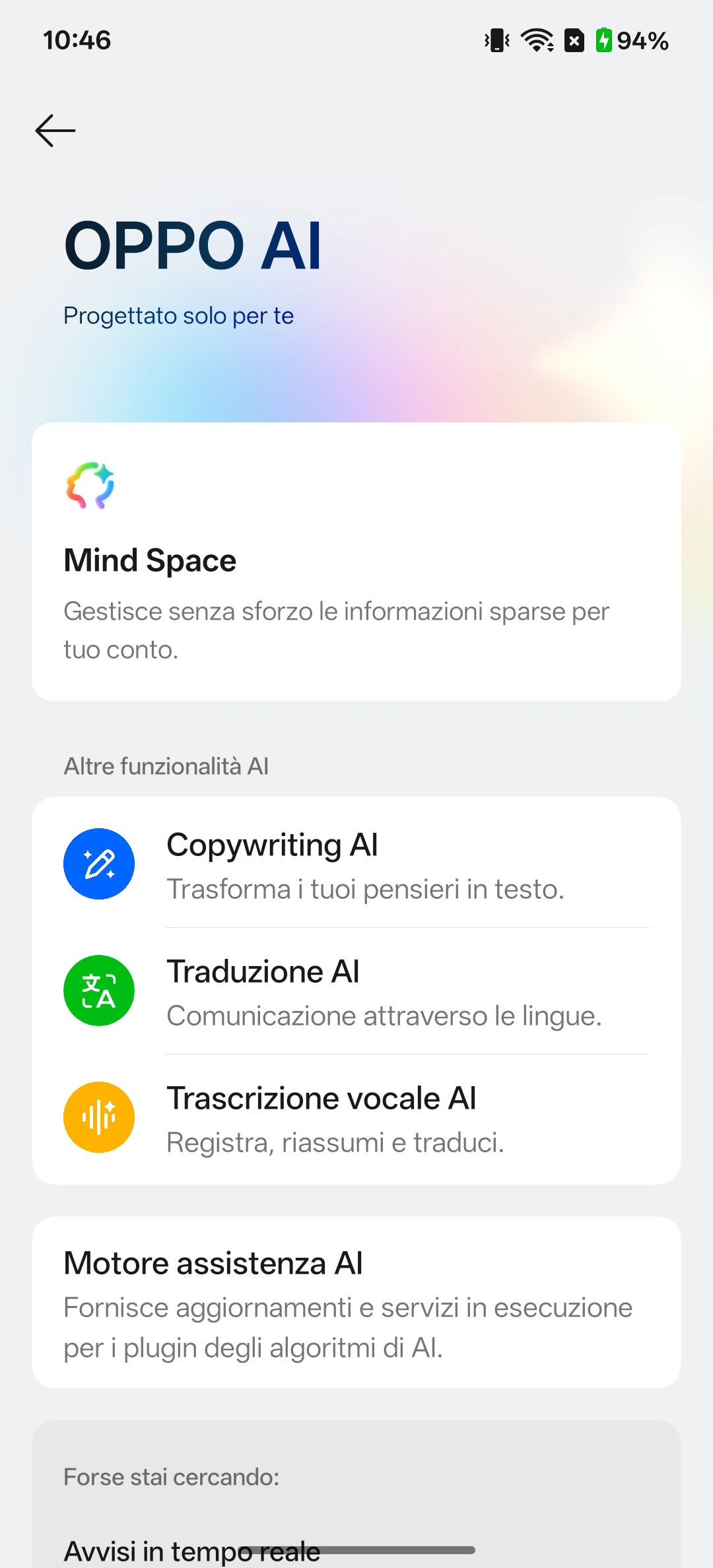 C’è poi tutta la parte legata alle funzioni smart e all’intelligenza artificiale, che su ColorOS 16 occupa uno spazio importante. Una delle funzioni più interessanti è AI Mind Space, che permette di salvare velocemente contenuti e informazioni viste a schermo, così da ritrovarle in modo più ordinato in un secondo momento. È una funzione che, usata bene, può diventare comoda nella vita reale, soprattutto per chi usa spesso il telefono per lavoro, appunti rapidi, viaggi, link, promemoria o contenuti da recuperare più tardi.