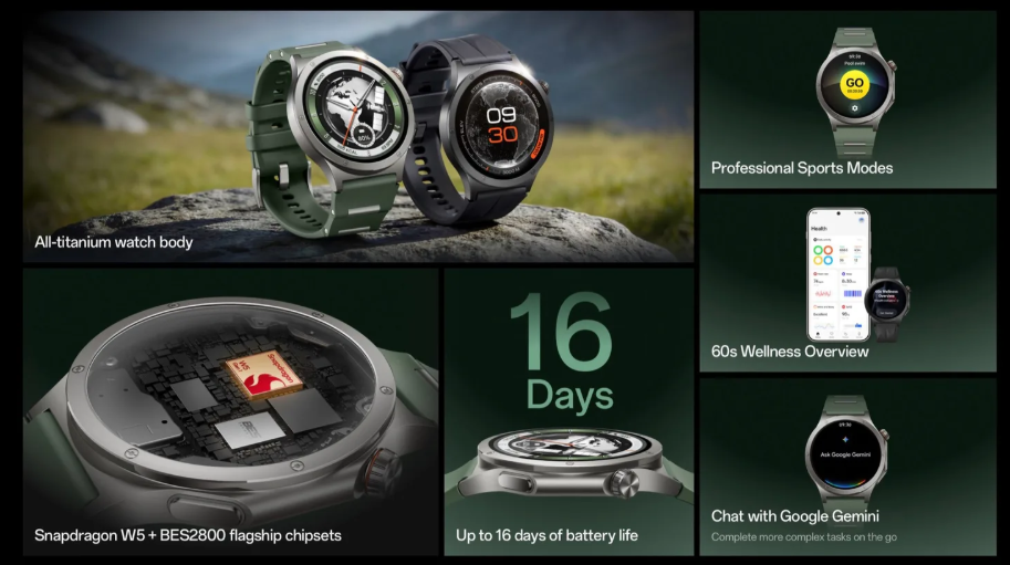 La strategia tecnica dietro all’autonomia ruota invece attorno a una piattaforma a doppio livello. Da una parte c’è il Qualcomm Snapdragon W5 Gen 1, cioè il chip principale che gestisce l’esperienza smart. Dall’altra c’è il co-processore BES 2800, pensato per alleggerire i consumi e supportare le attività meno pesanti in modo più efficiente.