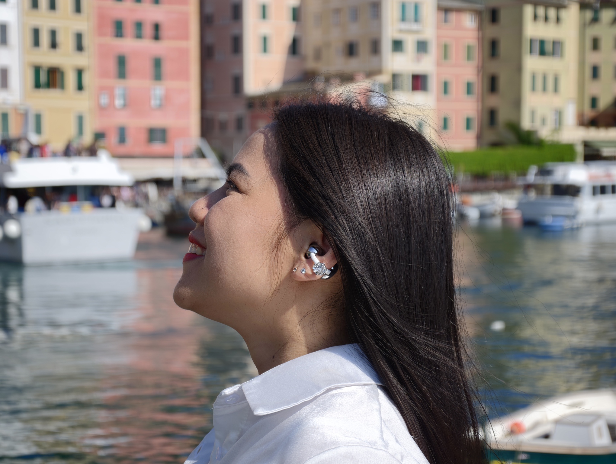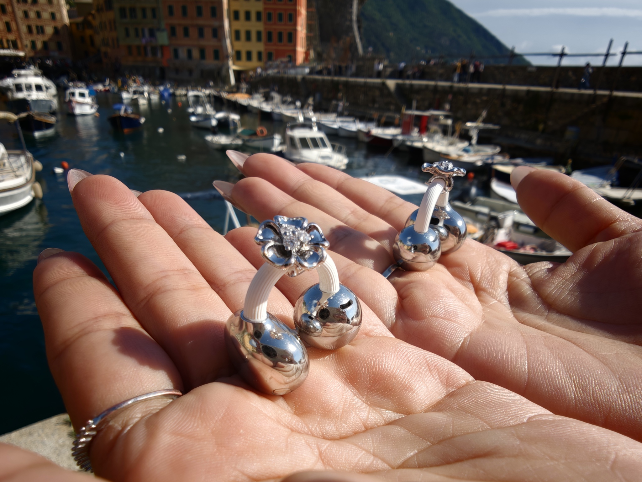 Dentro questo scenario, Charm Fiore Primaverile hanno trovato la loro collocazione migliore. Le Huawei FreeClip 2 partono già da una forma diversa dal solito. Con questo charm, però, entrano ancora di più in una dimensione che va oltre il semplice accessorio audio. Nelle foto scattate tra il Tigullio e i suoi scorci più iconici, la sensazione è stata subito quella di un oggetto capace di stare bene dentro un immaginario preciso: quello della dolce vita, della femminilità elegante, del gusto che passa dai particolari.