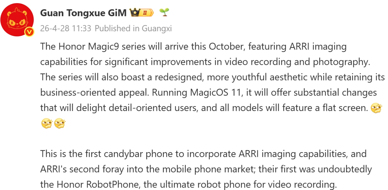 Secondo le ultime anticipazioni, la serie Honor Magic 9 dovrebbe debuttare in Cina nel mese di ottobre e portare con sé importanti aggiornamenti in ambito imaging e design. La notizia più interessante riguarda proprio l’integrazione di capacità fotografiche e soprattutto video sviluppate con il supporto di ARRI, azienda storicamente legata al cinema, alla televisione e alla produzione pubblicitaria di fascia alta.