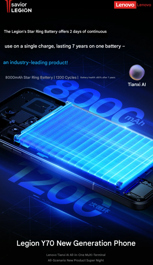 Lenovo Legion Y70: batteria da 8.000 mAh e lancio fissato per il 19 maggio